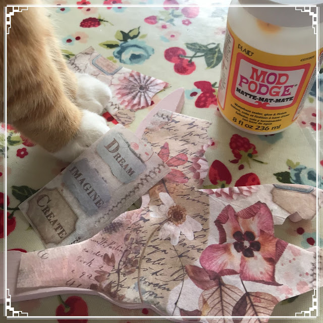 When I went to pack my Easter decor away I came across a bag with these wooden rabbit buttons in & the 3 tiny wood frames. I can't remember how many years I've had these for but it was time to