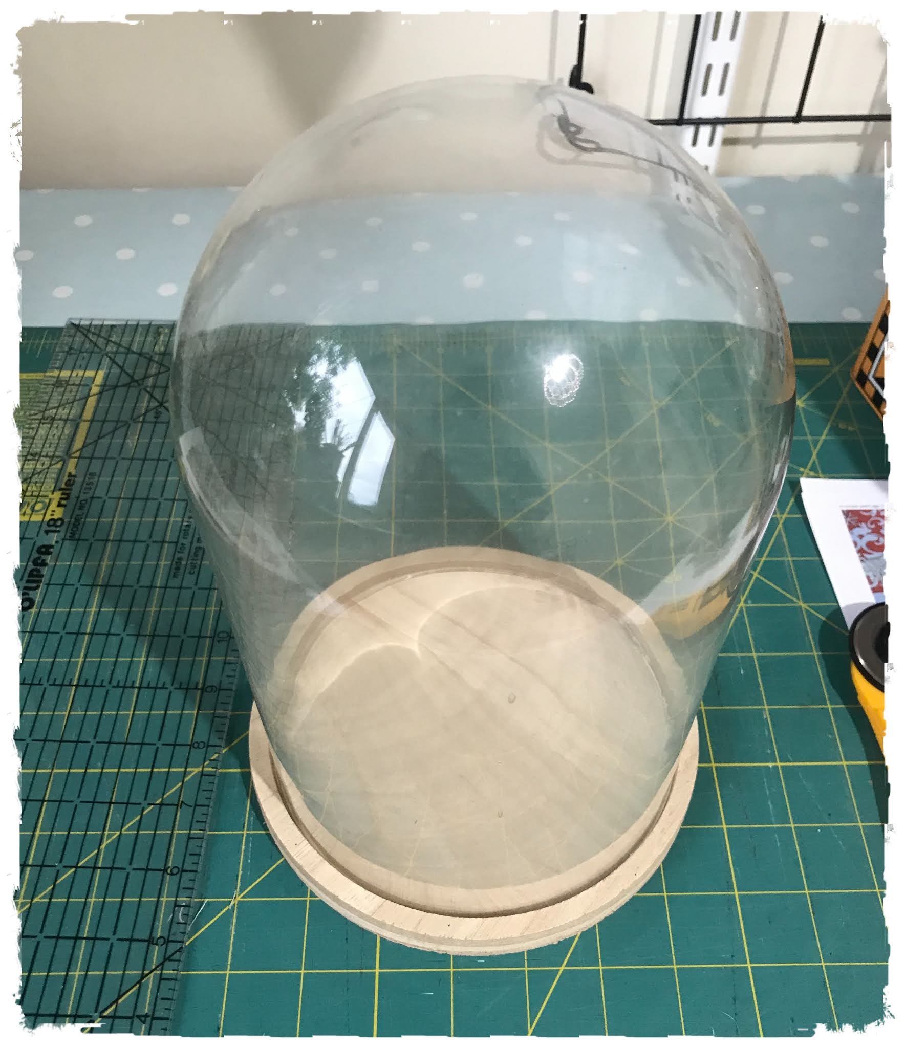 This old round baking tin was in my stash, no doubt thrifted at some time & showing signs of rust. I gave it the Resene Rust FX treatment & it came up well. It was the perfect size to fit under my wire cloche & just big enough to hold my gourds.