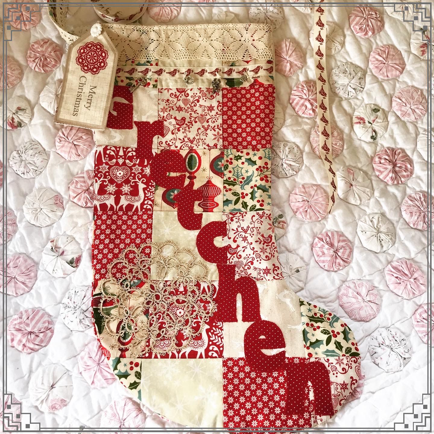 My friend & longtime customer Desiree requested me to make a Santa Sack to match the stocking I made for her beautiful daughter last December (see photo below).  You can read about the making of the stocking  in this post * here *